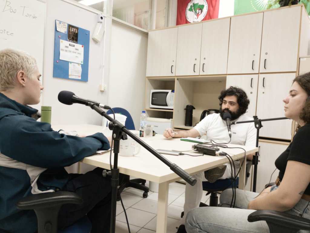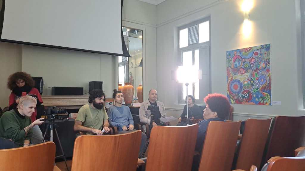 Outra entrevista conduzida foi com a graduada em História, Luiza Ferreira da Silva, para o projeto Ayacast: Tramas da História. Neste momento, discutiu-se a jornada de Luiza e sua pesquisa sobre as relações editoriais do escritor nigeriano Chinua Achebe. Além disso, a equipe de audiovisual realizou uma sessão de elaboração de roteiros para o desenvolvimento do projeto Histórias Plurais: Aldear a Política, com auxílio do mestrando Weuler Azara.